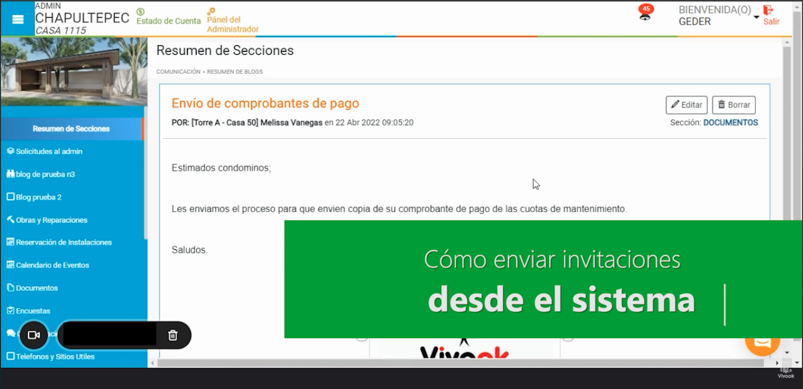 Una vez dentro, tus residentes podrán ver todo lo que necesitan: